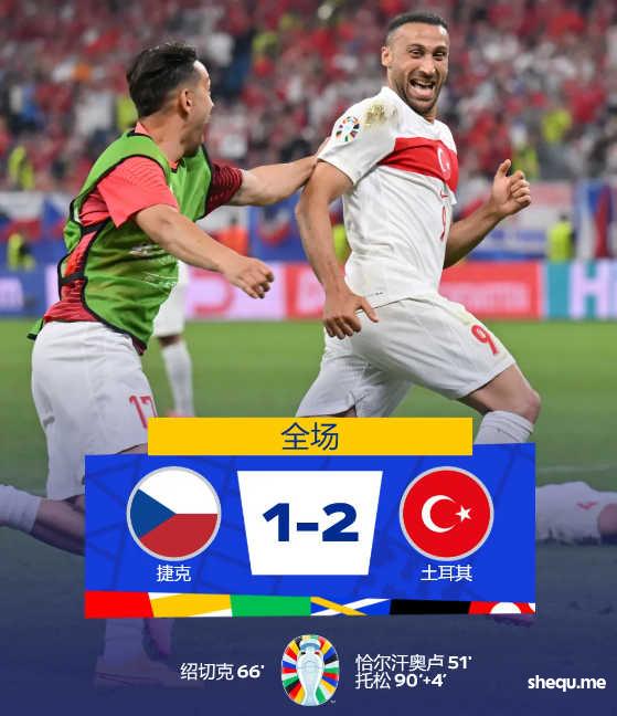 另一场比赛红黄牌满天飞,土耳其2-1击败10人捷克,恰尔汗奥卢破僵,绍切克扳平,托松补时绝杀。比赛结束后,双方还发生冲突。本场裁判一共掏出18张黄牌和2张红牌,创造欧洲杯赛事单场红黄牌之最。